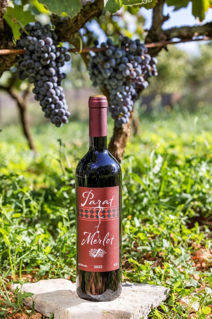 Merlot Parat proizvodi se od grožđa koje dolazi sa skeletnih položaja otetih surovom kršu Zagore. Fermentacija i maceracija se odvijaju pri nižim temperaturama u kontroliranim uvjetima. Vina nakon alkoholne i malolaktične fermentacije dozrijevaju barrique bačvicama od slavonskog, američkog i francuskog hrasta do godinu dana. Dozrijevanjem vina u drvu, baršunasti tanini Merlota izvrsno se zaokruže, dajući vrsnu harmoniju ovom vinu. Nakon odležavanja, vino se puni u boce u kojima odležava minimalno tri mjeseca prije puštanja u prodaju.